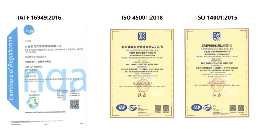 多年來,明飛汽車零部件有限公司憑借其卓越的技術實力和產品品質,榮獲了多項榮譽。公司早在2002年就通過了BSI ISO9001:2000質量體系認證,2006年更是通過ISO/TS16949:2002環境管理體系認證及AQA認證,被譽為中國大型模具重點骨干企業。此外,公司還榮獲了“第十一屆中國國際模具技術和設備展覽會精模獎”一等獎等多項殊榮,展現了其在行業內的領先地位。