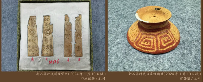 走進考古工作站,工作人員正在為出土的遺存拍照、修復等。庫房內堆滿新出土的大量骨器、玉器、石器,尤其一些骨器上有精美的橫線、三角或同心圓刻紋,顯示出先民較高的手工業技巧。