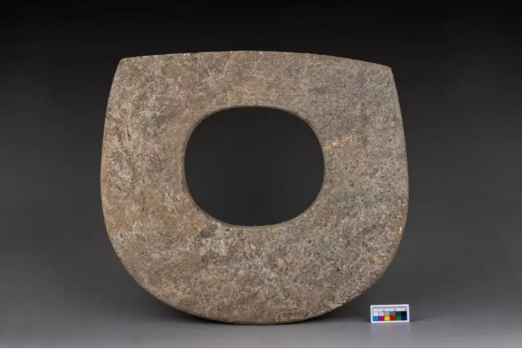 其中,一件大穿孔石鉞尤為珍貴,是迄今發現的中國史前保存完好的最大石鉞。李默然介紹,這柄石鉞出土時就放在男性墓主人頭邊,沒有任何使用的痕跡,并且該墓葬面積明顯大于周邊普通墓葬,墓主人腰部還放置1件石鉞、1件石斧和1件三孔石刀,頭部右側還有20余件豬下頜骨,基本都是0至4個月大的家豬。
