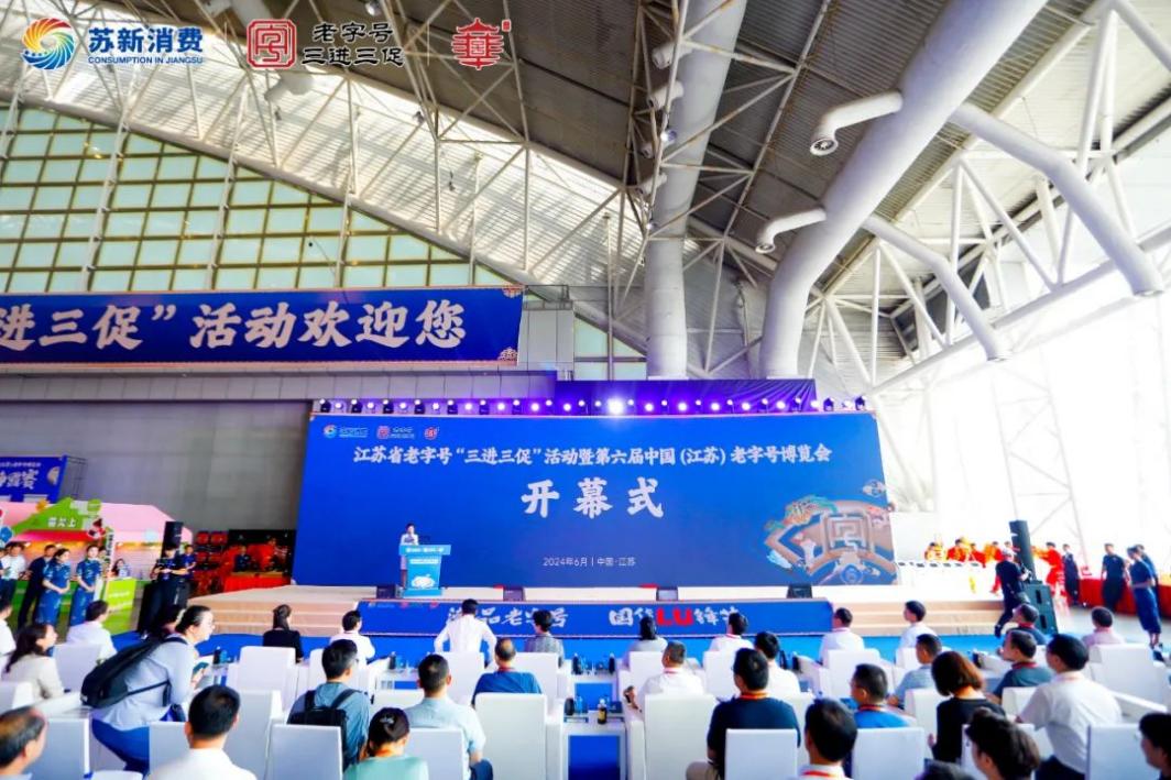 6月14日,江蘇省老字號“三進三促”活動暨第六屆中國(江蘇)老字號博覽會在南京國際展覽中心開幕,其中,老字號“三進三促”活動由江蘇省流通產業促進中心主辦,中國(江蘇)老字號博覽會由江蘇貿促國際會展有限公司、江蘇省老字號企業協會共同主辦。參展企業400余家,匯聚了餐飲、日用百貨、醫藥、酒類、醬醋、工藝品等萬余種國貨潮品。作為中華老字號、江蘇白酒杰出代表,湯溝酒業應邀參會,共赴國貨潮品盛宴。