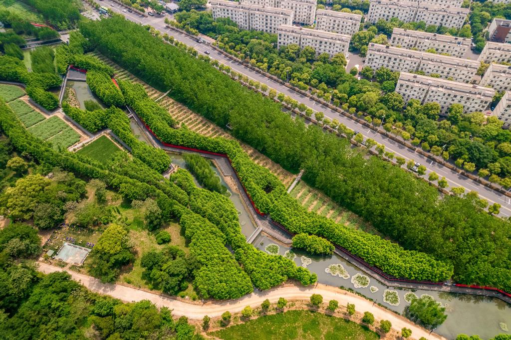 真山公園位于居民區,占地面積16.7萬平方米,由濱水休閑區、田園山林區、田園濕地區等組成。一條紅色長椅貫穿園區,長椅周邊建成集漫步、觀光、休憩、科普教育等于一體的功能體驗帶。這兩年,公園還在不破壞景觀植被的前提下,增設兒童健身場、籠式足球場、健身路徑等體育設施,滿足不同年齡段居民的需求。通安鎮還打造了多個口袋公園,如位于西塘路與同心路交叉口的同心園,占地面積約1700平方米,利用原地塊綠量資源,保留樹林,鋪設健身步道,為居民提供健身漫步空間。該口袋公園榮獲2023年度蘇州市“園林杯”最美口袋公園稱號。