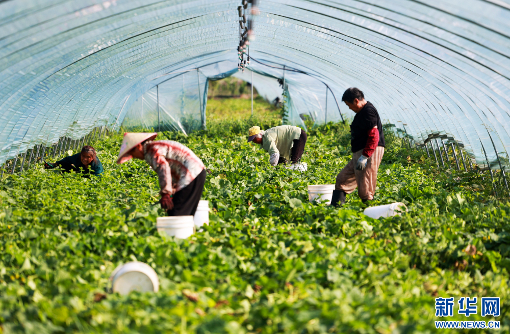 泰興市古溪鎮顧莊村松楊四組村民在大棚內采摘甜瓜