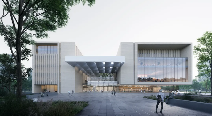 常州市第二工人文化宮的項目設計根據功能需求劃分群落體塊,呼應常州傳統民居的肌理,建筑形象面向高鐵新城城市主干道,形成圖、演、展、藝、體五館群落,以更好滿足職工精神文化陣地為基本需求,結合工人“樸實力量感”和文化“多元開放性”,打造成為具有樸實的工人特性并兼富有人文氣息的工人文化宮。