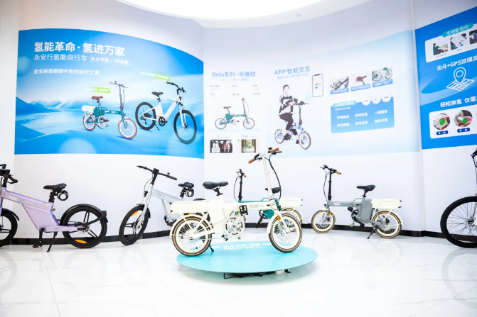 永安行通過研發生產制氫儲氫能源系統、太陽能制充氫一體機、氫能自行車、燃料電池、低壓固態儲氫裝置等氫能產品。公司生產的民用型氫能自行車續航總里程40-60公里,最高時速24KM/H,采用換氫便捷僅需10秒。企業還配套生產了氫能自行車的家用微型制氫充氫一體機,家里瓶裝的純凈水、蒸餾水都可以用來制氫。只需要加入兩百毫升純水,通電約5個小時即可制滿20克氫氣,能夠助力自行車續航50公里到60公里。