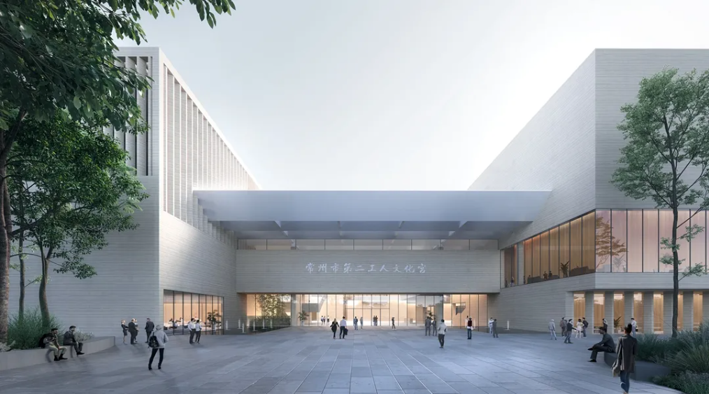 該項目呼應常州傳統民居的肌理,建筑形象面向高鐵新城城市主干道,形成圖、演、展、藝、體五館群落,以更好滿足職工精神文化陣地為基本需求,結合工人“樸實力量感”和文化“多元開放性”,打造成為具有樸實的工人特性并富有人文氣息的場所。