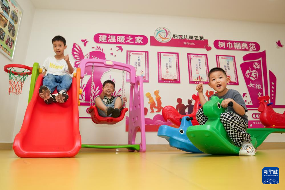 8月30日,小朋友在揚州市寶應縣安宜鎮蓮花社區婦女兒童之家內玩耍。