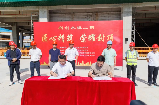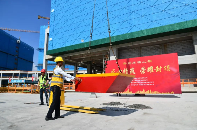 秋實無華香飄遠。9月14日,總投資7.88億元的科創水鎮二期一標段迎來主體結構封頂。