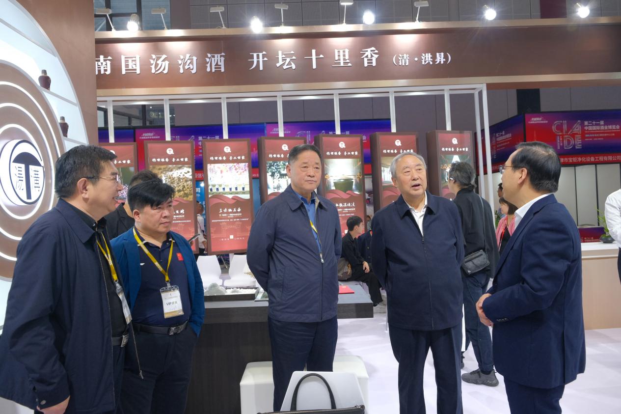 國家圖書館名譽館長周和平,中國國際廣播電臺原臺長王庚年,中國酒業協會理事長宋書玉,灌南縣人民政府副縣長祝銀偉等領導參觀湯溝展館,聽取了湯溝酒業總經理鄭軍關于湯溝酒歷史文化、生產工藝及產品情況的介紹。