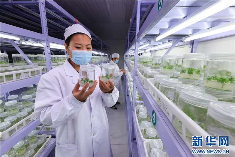 11月21日,在連云港市贛榆區厲莊鎮謝湖村大櫻桃組培繁育中心,工作人員觀察大櫻桃組培苗木擴繁情況。