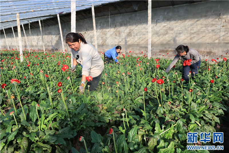 11月28日,花農在江蘇省連云港市贛榆區金山鎮趙湖村采摘非洲菊鮮切花。