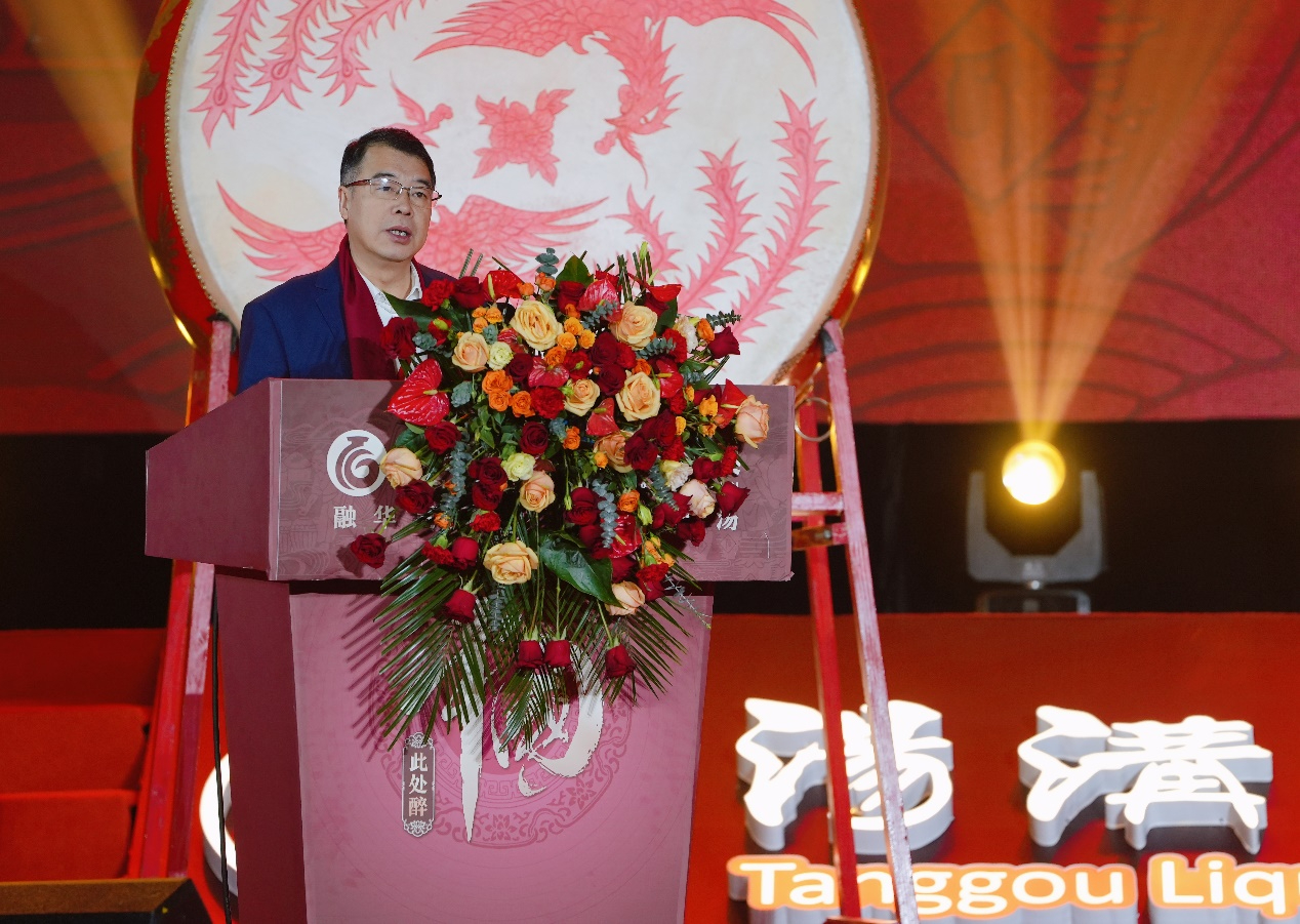 中國酒業協會副秘書長劉振國、中國酒類流通協會副秘書長邢春雷,灌南縣人民政府縣長高站分別致辭。江蘇湯溝兩相和酒業有限公司黨委書記、董事長朱耀匯作《天選湯溝 此醉中國》主題演講。
