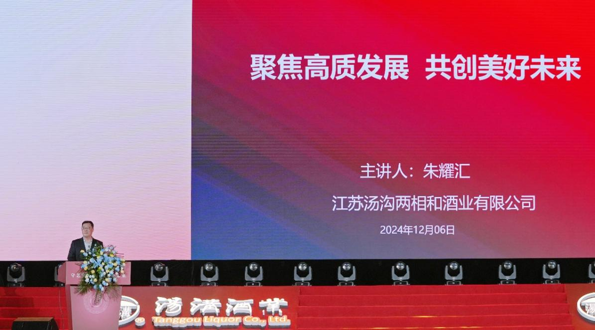 朱耀匯在主題演講中介紹,湯溝酒歷史悠久、底蘊深厚,具有“香而不艷、綿而不淡、凈而不寡、甜而不膩”的風格。2021年,湯溝酒業確立了“三年翻一番,五年五十億,十年超百億”“挺進中國白酒二十強”等戰略發展目標。2023年,湯溝順利完成了“三年翻一番”的階段性發展目標,為企業高質量發展奠定了堅實的基礎。他表示,在時代的浪潮中,湯溝將勇立潮頭,不斷進取,走出發展逆境,形成良性趨勢,在“持續小贏”中實現創新發展,為建設“強富美高”新灌南貢獻更多力量,為圓夢“百億湯溝”目標而不懈奮斗。