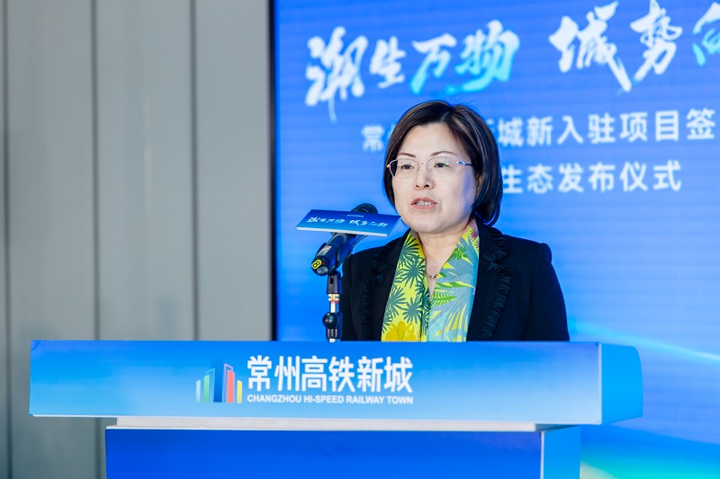 高鐵新城公司和常高新集團黨委書記、董事長、總經理戈亞芳致辭,她表示常州高鐵新城作為常州城市發展的新引擎,自規劃之初便承載著“城市新中心、中軸新支點、產業新高地、智慧生態城”的戰略定位,堅持“站城湖一體化”發展理念,全力推進新城建設,力爭將這里打造成為總部企業集聚、文商體旅蓬勃發展的中央活力區。經過四年的高質量建設,星耀城、領航大廈、新科創中心、創智大廈等新興載體如雨后春筍般拔地而起,為這座活力新城增添了新的亮色。此次高鐵新城城市圈盛迎“新朋友”,期待在未來,能夠共同攜手,建設活力更足的魅力之城。