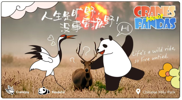 實景拍攝+涂鴉插畫,演繹丹頂鶴和熊貓的“CP奇遇記”!“Cranes Meet Pandas”(丹頂鶴遇上大熊貓)海媒全球傳遞活動邀您跟隨丹頂鶴和熊貓,一起打卡鹽城。