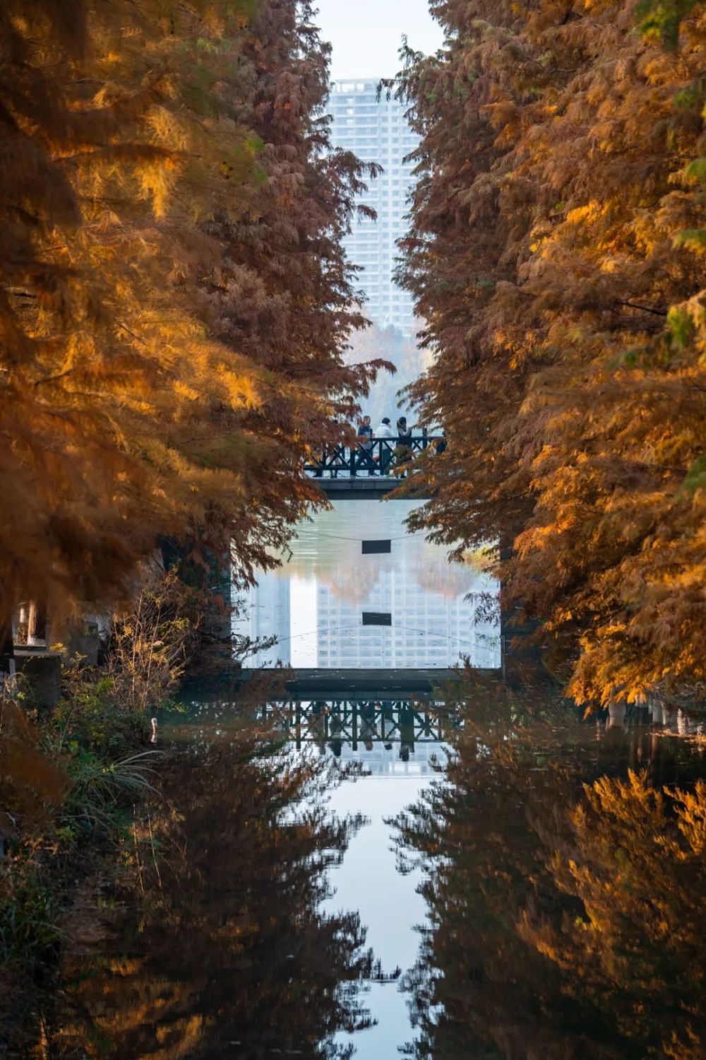 初冬時節,鹽瀆公園的水杉仿佛被自然界的魔法師賦予了獨特的魅力。
