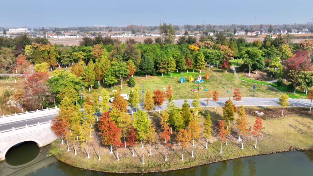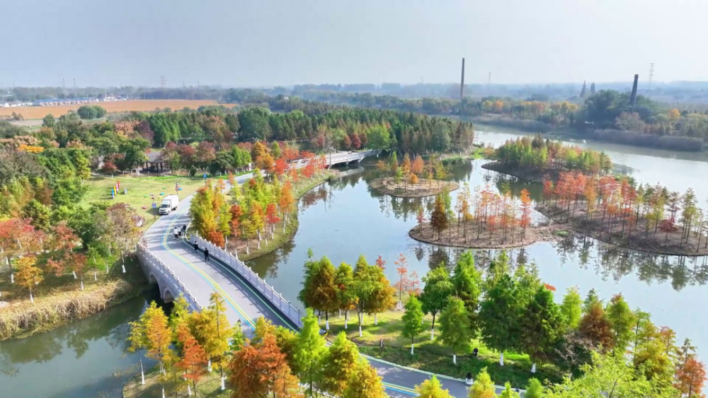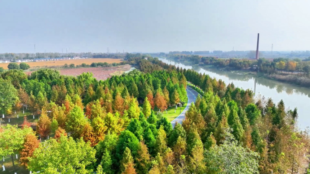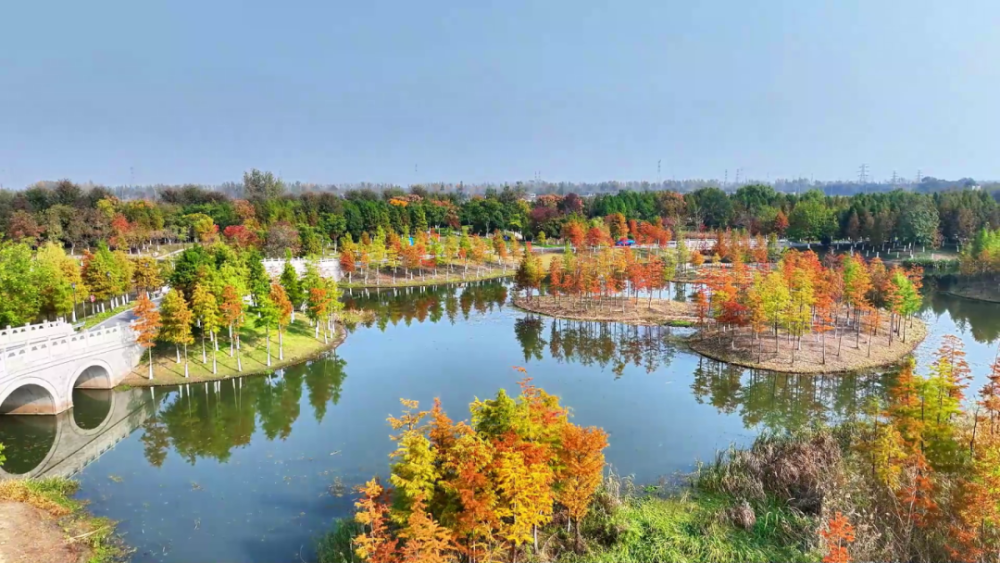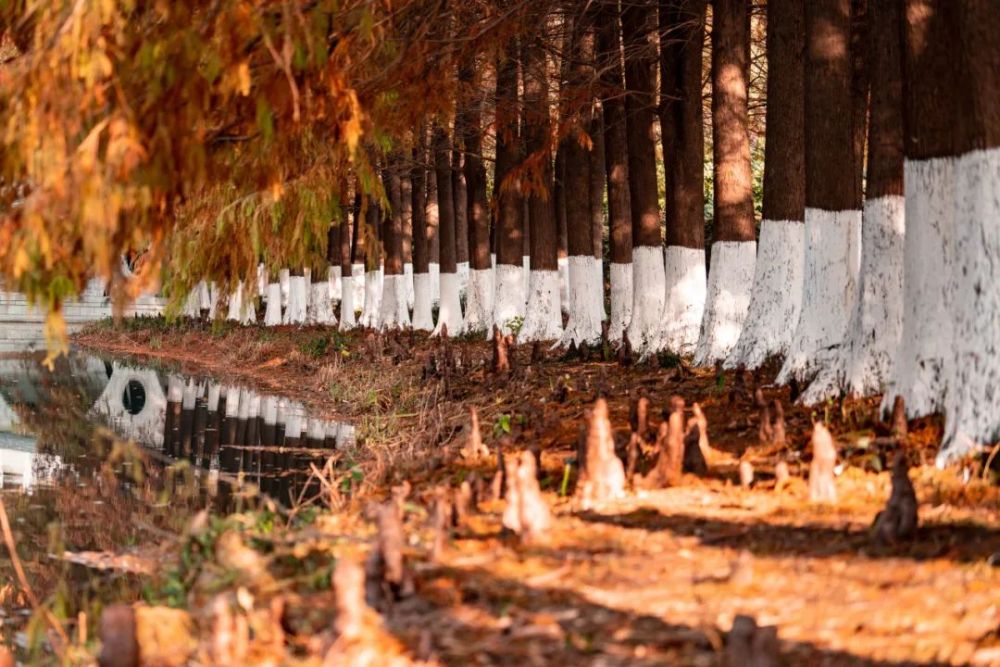 一排排挺拔的水杉高聳入云,墨綠、棕黃、深紅……多種色彩交織在一起,勾勒出絢麗多彩的生態畫卷。