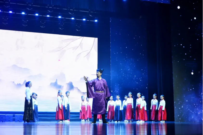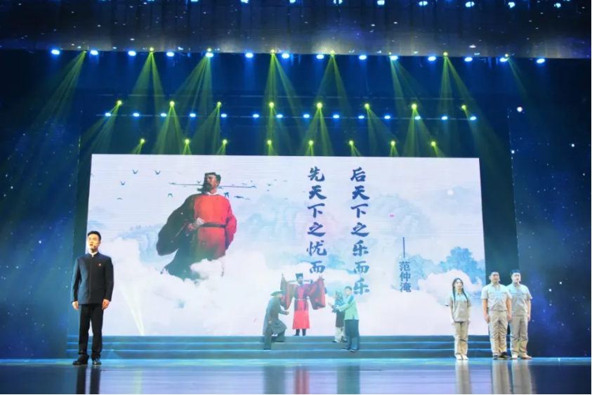 在隨后的演出中,來自全市各地的文藝工作者和學校師生代表,通過淮劇、交響詩舞、歌曲、微短劇、京歌等表現方式,展現了范仲淹的憂樂思想、家國情懷、高潔品質,以藝術的手法傳頌范公跨越千年的偉大情懷。