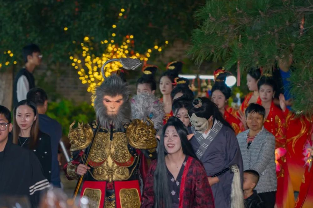 悟空帶領西游小隊空降水街,所到之處,人流如織,笑語盈盈;非遺淮劇展現著悠悠古韻;水云閣廣場處處充滿著新疆風情。游客們積極參與各種互動游戲和演藝活動,歡聲笑語此起彼伏,節慶的氛圍感被瞬間“拉滿”。此外,鹽鎮水街的美食也是一大亮點。游客們可以品嘗到各種地道的鹽城小吃以及來自新疆的特色小吃,感受不同地域文化的獨特韻味。國慶期間,鹽鎮水街總接待客流量達35.9萬人次,成為了游客們歡聚一堂的熱門選擇。