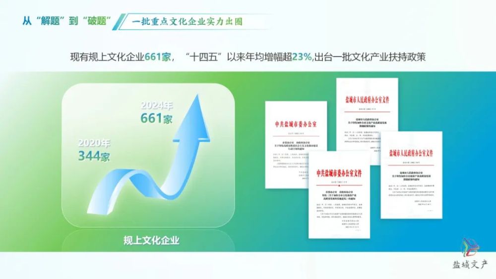 全市現有規上文化企業661家,十四五以來年均增幅超23%。出臺一批文化產業扶持政策,20多家文化企業分獲中國獨角獸企業、江蘇省民營文化企業30強、江蘇省重點文化科技企業等榮譽。