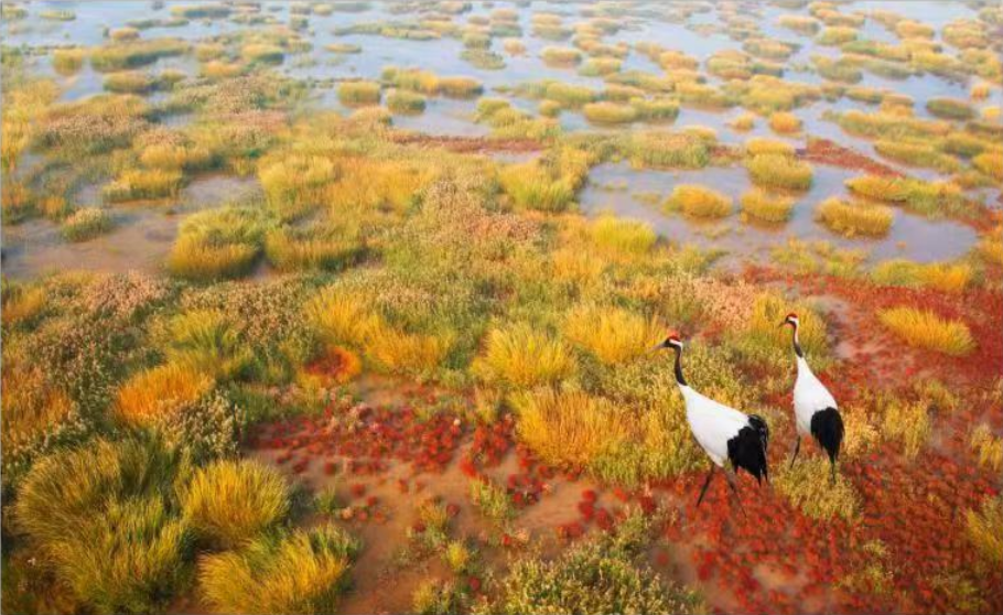 灘涂綿延、鶴舞鹿鳴,正是全球候鳥秋遷的季節,坐擁“世界自然遺產”和“國際濕地城市”兩張國際名片的鹽城,正在完成一場物種大遷徙。作為鹽城“吉祥三寶”之一的丹頂鶴,因身姿優美、體態優雅聞名于世,被世界自然保護聯盟紅色名錄納入為“受威脅”易危(VU)物種,是我國一級重點保護野生動物。鹽城黃海濕地是“東亞—澳大利西亞”遷飛路線上數百萬候鳥的停歇地,是全世界野生丹頂鶴西部大陸種群最大的越冬地?!吧缗!钡ろ旡Q“加利福尼亞”自2023年出圈以來,吸引諸多游客前往江蘇鹽城濕地珍禽國家級自然保護區觀賞互動。