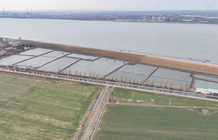 春光明媚,田野泛綠。沿著淮安市清江浦區二河東堤遠眺,數方魚塘整齊排列,魚塘中間的智能增氧泵激起層層漣漪。魚塘邊向東望去,是一眼望不到邊的連片農田,田中小麥剛露新芽,與河堤相隔水鳥盤旋的二河共同構成了一幅美麗的田園畫卷。