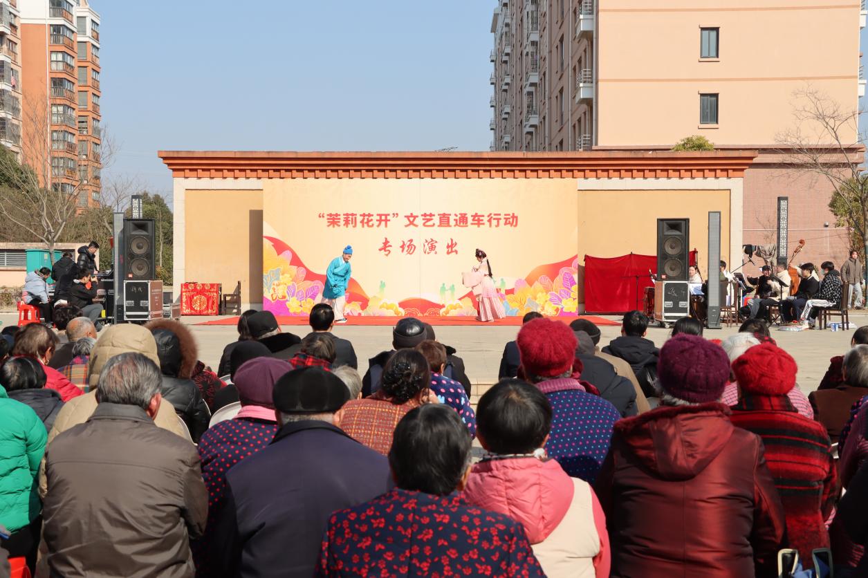 近日,陽光明媚。句容市后白鎮長里崗村茶香苑小區的文化廣場迎來了一場別開生面的文化盛事?!败岳蚧ㄩ_”文藝直通車行動的第二場演出在此精彩上演,為居民帶來了一場視聽盛宴。