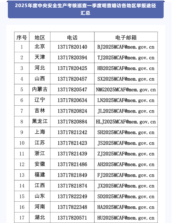 進駐期間,各考核巡查組將通過設立舉報電話、電子郵箱等方式接收群眾舉報,堅決查處群眾身邊的安全生產重大問題隱患,對典型重大問題,將提級督辦并移交屬地倒查責任。