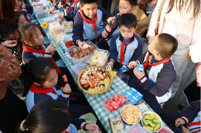 活動期間,正值南麻小學一年一度的油菜花節。校園里,南小師生親手種植的萬株油菜開成了金色的花海。南麻小學用好鄉村資源,邀請六中師生一起體驗鄉間民俗——燒野火飯。演出一結束,大朋友與小朋友一起架鍋起灶,做起了豌豆咸肉飯,包起了燒麥、餛飩……夕陽西下,炊煙裊裊,笑臉在花田間穿梭,笑聲在野火飯的焦香里融化,這便是春天快樂的味道。