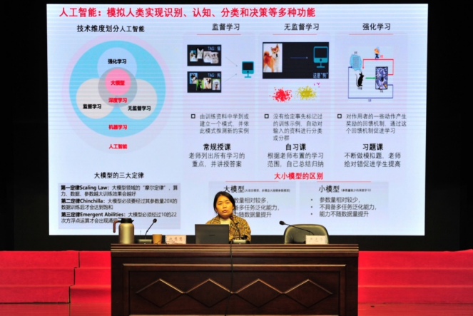 學校舉辦人工智能主題講座,邀請江南大學人工智能與計算機學院院長方偉講解人工智能技術發展與趨勢,以及在教育教學中的應用場景,闡述了人工智能對教育教學的深刻影響。無錫人工智能協同創新基地技術官趙慧慧分享人工智能前沿動態、人工智能應用等內容,展示其在多個專業領域的應用案例。兩場講座為教師教學和學術研究帶來新思路,進一步認識到人工智能在教育教學中的價值與潛力。