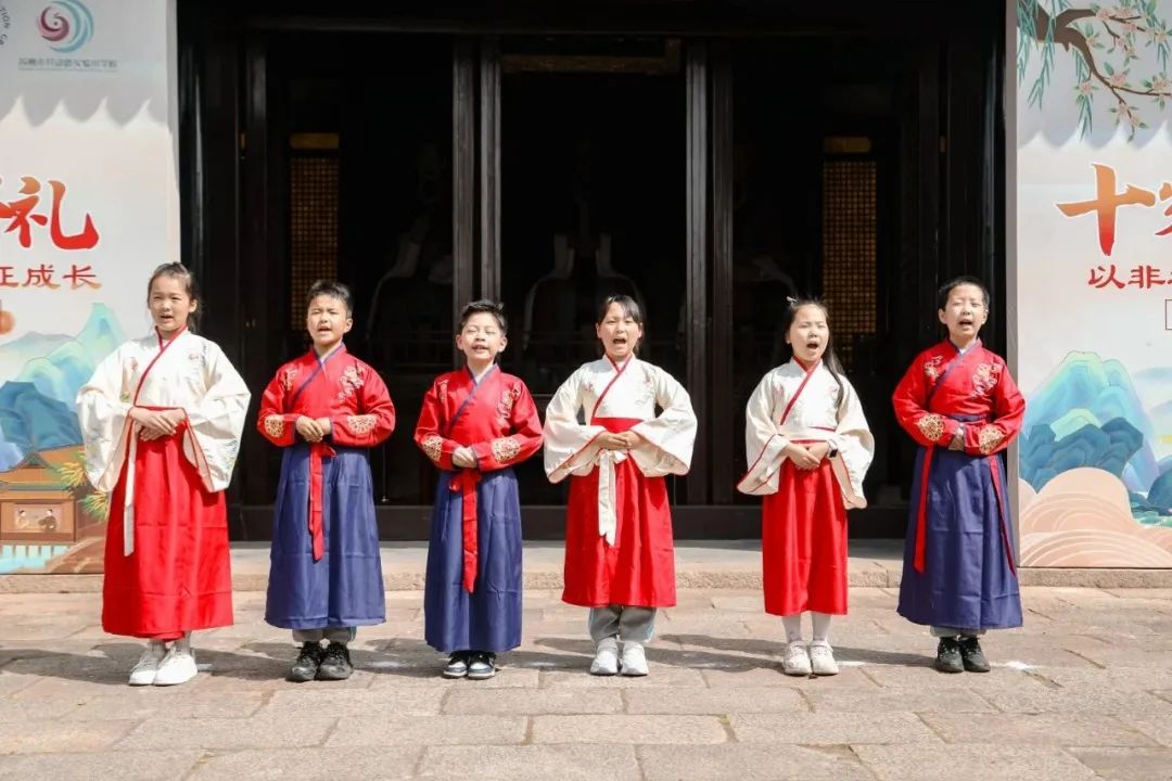 蘇州市勞動路實驗小學校將成長儀式與思政課奇妙融合,把課堂搬進泰伯廟,以“十歲而志 朱雀承禮:以非遺浸潤童心,以文化見證成長”為主題,在泰伯廟舉辦了2022級學生十歲成長儀式。通過沉浸式儀式教育和行走的思政課堂,引導學生尋根吳地文化,傳承泰伯精神,開啟人生新篇章。