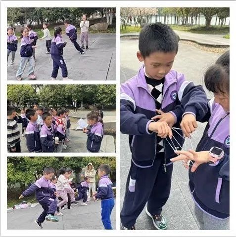 斜塘河畔垂柳冒出嫩綠新芽,宛如綠寶石點綴其上。同學們開啟了一段踏春追思的旅程。跳長繩、下棋、跳皮筋、吹氣球比賽、開小火車等同伴互動讓友誼升溫。采集石子,觀察紋理,隊員們盡情享受著探索樂趣。