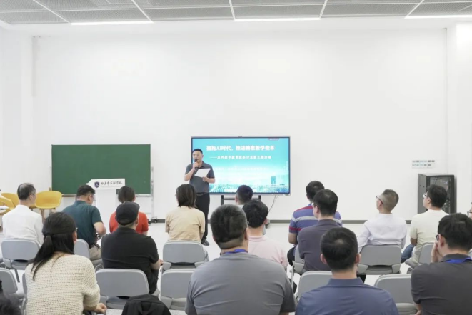 蘇州市人工智能教育創新中心負責人曹海榕出席沙龍并致辭。他指出,蘇州作為智慧教育示范區始終以“技術賦能教育”為使命,目前AI正深刻重塑教育生態,舉辦校企沙龍正是凝聚校企雙方智慧,破解教育轉型難題的重要手段,也是討論如何讓技術服務于“因材施教”,如何讓教學更精準、更科學的重要途徑。