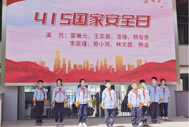 學校開展《點亮安全燈塔,照亮成長航道》主題晨會。同學們在晨會上扮演不同角色,模擬現實生活中可能遇到的國家安全威脅,并展示了正確的應對方法。