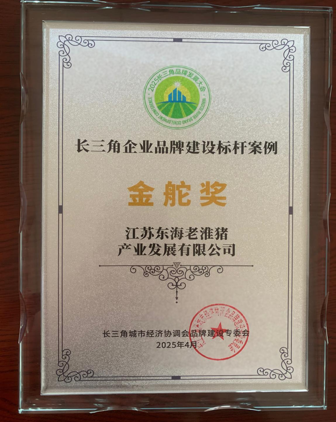 2025年4月28日,東海老淮豬受邀參加2025長三角品牌發展大會暨第十四屆寧波品牌雙評選活動頒獎典禮。本次大會以“創新、協同、共贏—打造世界級品牌生態圈”為核心主題,旨在激發品牌創新活力,促進區域品牌協同發展,共同探索構建具有全球影響力的品牌生態體系。在這場匯聚了眾多行業翹楚與創新先鋒的盛會中,東海老淮豬以其獨特的品牌魅力與卓越品質,成功摘得金舵獎。