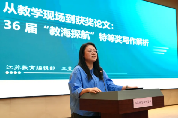 在論文點評環節,《小學生數學報》主編張彩萍、《江蘇教育》副主編王昱從編輯的視角出發,結合具體的“教海探航”獲獎論文,就教育論文寫作與學員進行經驗分享。(金茂喆)