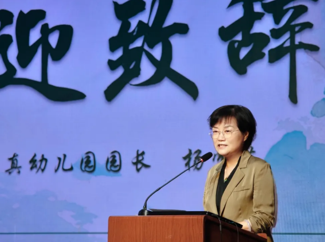 南京市南外附屬幼兒園楊雪萍園長獻上了精彩的致辭,首先對前來參加活動的各位專家、領導以及幼教同仁表示熱烈的歡迎,并簡要說明了該園多年來一直秉承著課程游戲化的精神理念,以游戲為基本活動,做了許多大膽的探索和有力的變革,立志把重新認識兒童,反思教育,珍惜兒童快樂而有意義的童年作為初心與使命。真正讓兒童釋放天性,讓教育回歸本真,從而構建起彼此滋養,相互啟迪的成長共同體。