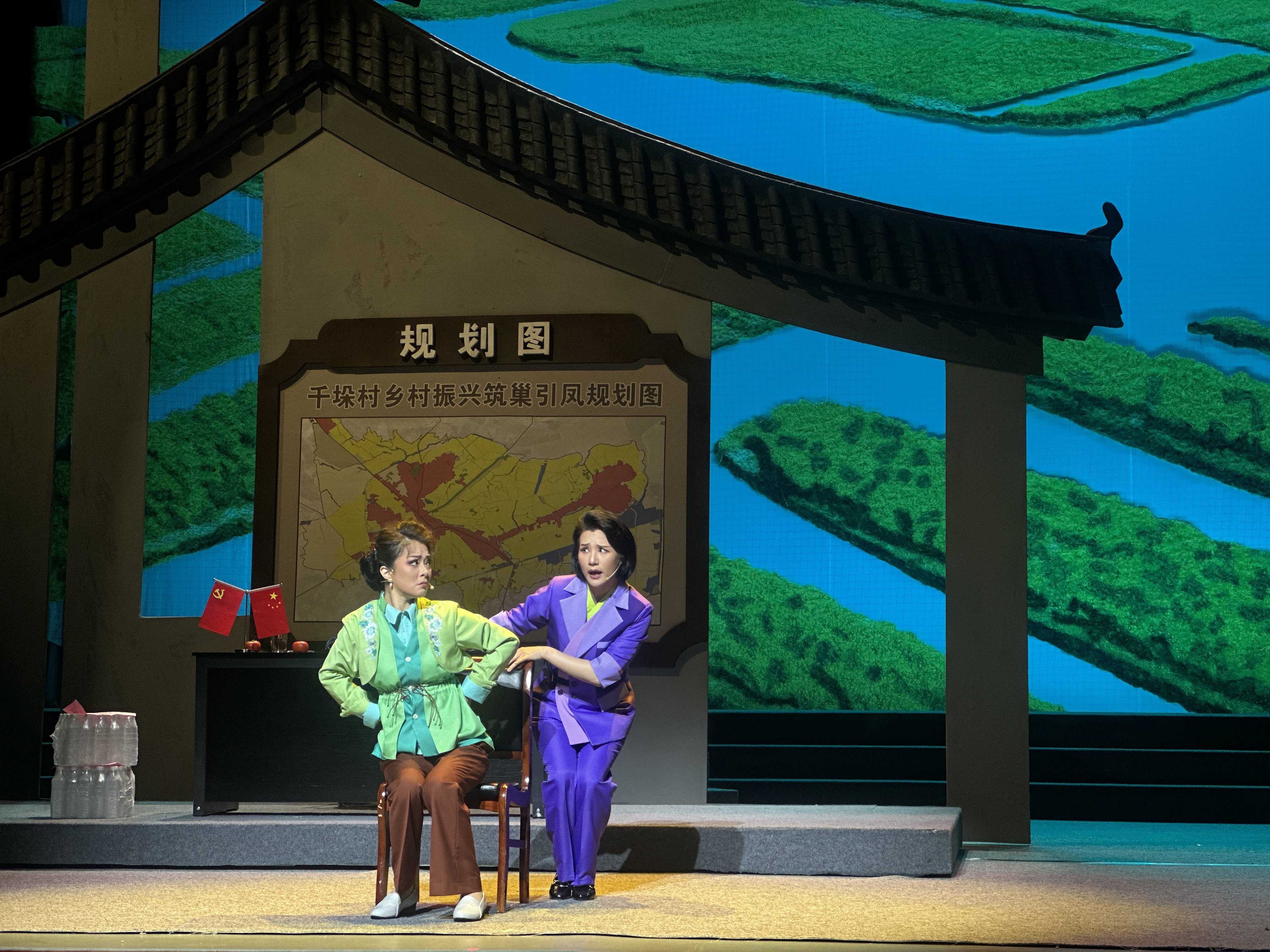 淮劇《油菜花開燕歸來》由興化市委宣傳部、興化市文體廣電和旅游局聯合打造,興化市淮劇團創排,是一部原創鄉村振興題材現代戲,通過“不蒸饅頭爭口氣”“村長患上失眠癥”“跌個跟頭抓把泥”“芝麻雖小榨出油”“高徒也能出名師”“秤砣雖小壓千斤”等喜劇化段落,以戲曲藝術特有的敘事手法,講述了基層女村干部鄭小琴在省委鄉村振興工作隊的支持下,筑巢引鳳,召喚年輕人回村,推動文旅融合,帶領村民開發文旅產業、建設詩畫莊園,將落后村莊改造成充滿活力的“青春村莊”“希望村莊”的心路歷程。全劇以生動的情節謳歌了基層干部的堅定黨性與為民情懷,展現了水鄉新農村推動鄉村振興的新風貌,既具現實溫度,又富藝術感染力。