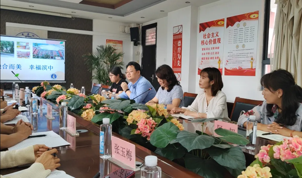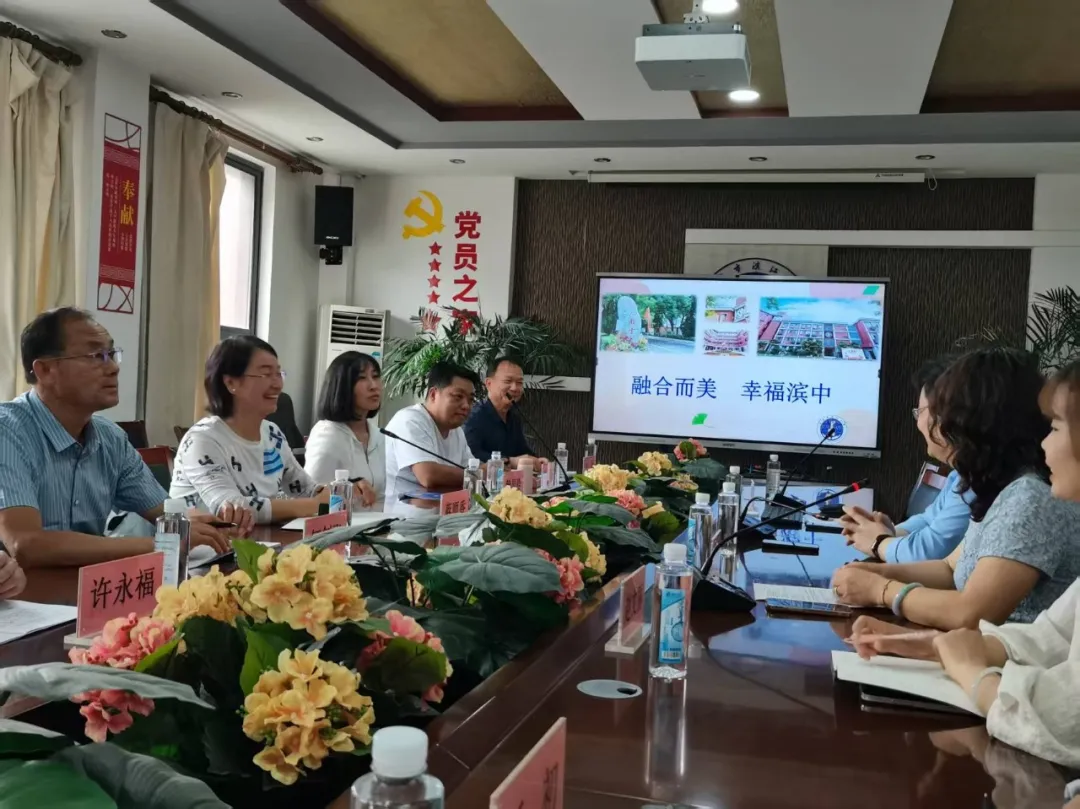 活動伊始,跟崗學習的領導們參觀了濱中的校園,之后來到了資源教室,看設施,問功能;談教學,說育人……方法的溝通,思想的碰撞,交流熱烈。