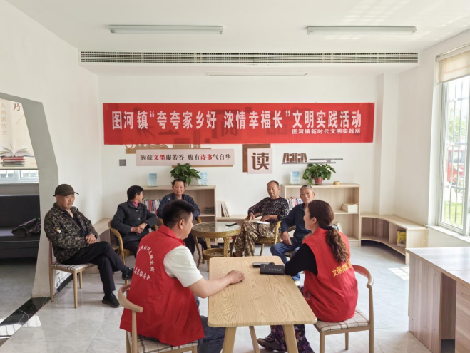 文明之“和”,厚植“宜人”沃土。農閑時分,在圖河村的百姓大舞臺上,村民們自發組建的文藝表演隊正在熱情地表演著小花船、快板書等節目,每一個節目都贏得了觀眾的熱烈掌聲和陣陣喝彩,大家在歡聲笑語中感受到了村莊的溫暖和活力。近年來,圖河村持續加強農村精神文明建設,突出示范引領、強化舉措落實,豐富群眾精神文化活動,不斷提升群眾思想道德素質和文明程度。同時圖河村將黨建與文明實踐融合于一體,對黨群服務中心進行了高標準規劃,建設了集休閑、娛樂、健身、學習于一體的文明陣地,以“夸夸會”等活動為平臺,持續性開展不同主題的文明實踐活動,打通宣傳群眾、教育群眾、服務群眾的“最后一公里”,切實營造尚科學、倡新風的良好社會氛圍。走在圖河村的鄉間小路上,在藍天的映襯下,昔日那些陳舊單調的沿路墻面,如今已換上融合村規民約、農業生產以及孝道美德等元素彩繪,為這個小村莊注入了獨特的文化魅力。