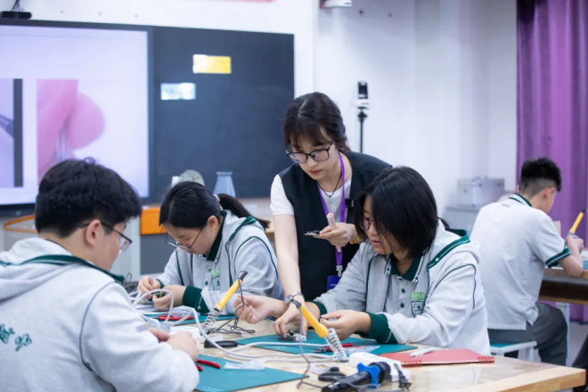 在電子電工主題教學中,老師們立足生活實際,開發了一系列既實用又富有探究性的項目,通過木雕燈的設計與制作、小臺燈的制作與檢測、制作光控小夜燈、安裝照明與插座電路、制作光控報警器、制作物聯小風扇、光暗報警器制作、制作智能電子賀卡等特色課程,重點培養學生的電子元件識別、電路設計、焊接組裝等核心技能。教學中,教師們采用任務驅動的方式,引導學生在真實情境中掌握電路分析與故障排查能力,同時注重滲透安全用電規范和節能環保理念。