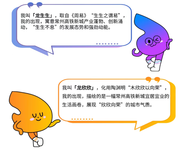 “好C成雙”就是雙龍合璧,兩個IP形象的不同姿勢組合,分別代表著攜手前行、相互支撐與合作共贏,共同構建起一個生意“新龍”、充滿活力、機遇涌動、精彩無限的生態圈,為每一位來到常州高鐵新城的投資創業者提供茁壯成長的沃土。