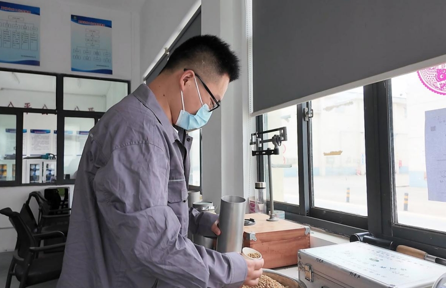 在檢驗室,江威正專注操作著近紅外谷物分析儀?!敖衲陥绦械氖亲顕罉藴剩核帧?3%、容重≥770克/升、雜質≤1%、嘔吐毒素≤1000μg/kg?!彼呎f邊展示檢測流程,“每車糧食要過‘三道關’——扦樣機隨機取樣、快速檢測儀初篩、實驗室復檢,任何指標不達標立即退車?!睘槭刈o“舌尖上的安全”,糧庫糧庫嚴格執行國家標準,對入庫小麥進行嚴格檢驗。 為應對夏糧收購高峰,劉莊糧庫提前三個月啟動倉容騰并工作,7300噸標準化倉房整裝待發。同時,優化收購流程,加班加點提供服務,糧食充足的情況下每天可收購1400-1500噸小麥。