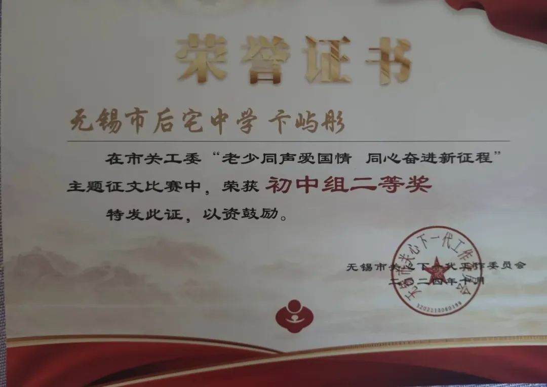 在后宅中學這座廣大舞臺上,我很榮幸能夠得到各種機會,在各項比賽活動上展現自己的風采,成為更加優秀的自己。我曾在英語口語大賽、漢字聽寫大賽等賽事上嶄露頭角。