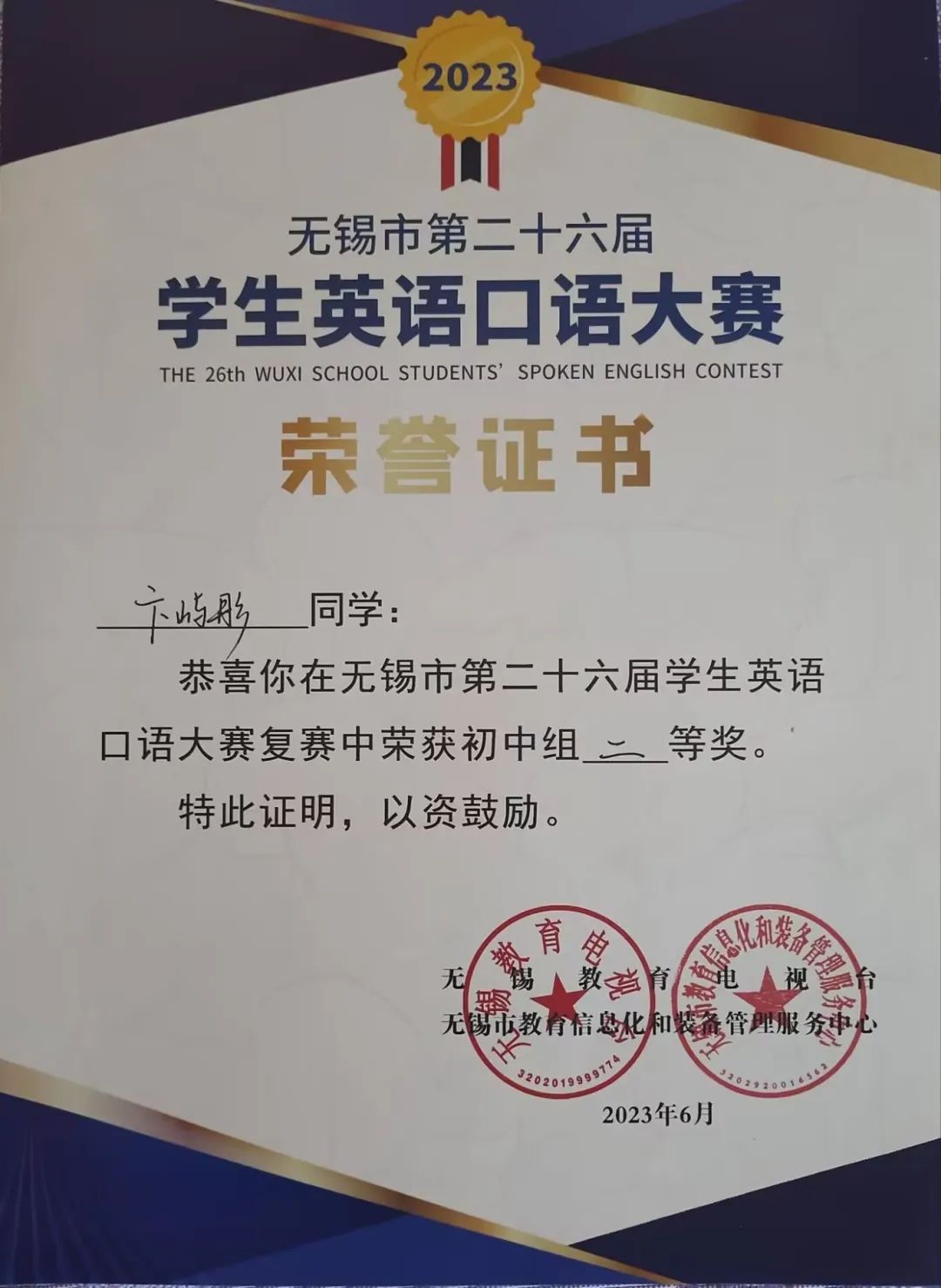 我是卞嶼彤,無錫市后宅中學2025屆初三畢業生。在今年的中考中,我全力以赴,最終以一個讓自己滿意的成績順利考入江蘇省梅村高級中學。
