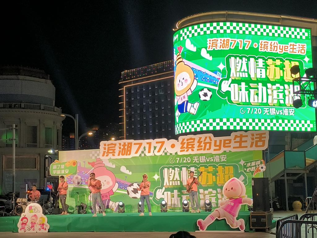 當晚正值“蘇超”無錫隊主場迎戰淮安隊。不在第一現場又如何?湖濱商業街解鎖“全街觀賽”新場景,用美食、市集、福利與震天的助威聲,共同見證蘇超的濱湖熱度,點燃市民的觀賽熱情。