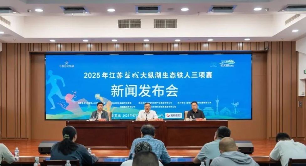 5月20日下午,2025年江蘇鹽城大縱湖生態鐵人三項賽新聞發布會在鹽都區融媒體中心新聞發布廳順利召開。燕舞集團黨委委員、鹽城市體育產業集團有限公司黨總支書記、董事長兼總經理王海東,江蘇大縱湖文旅發展集團有限公司總經理卞瑞華等出席新聞發布會,向媒體通報了賽事籌備情況并答記者問。