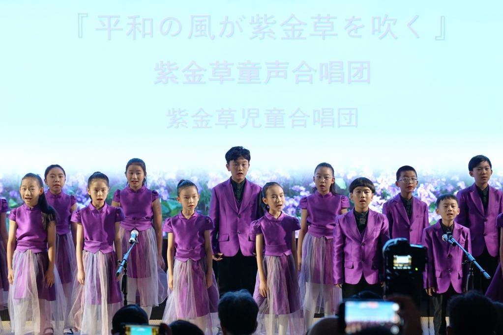 南京紫金草童聲合唱團的孩子們登臺演唱曲目《和平吹拂紫金草》,12名日本高中生依次登臺,手中的二胡弓弦輕顫,《讓世界充滿愛》的旋律流淌開來。南京市第九中學的學生們手持琵琶、二胡、竹笛等民族樂器,演奏《和平的童謠》。南京外國語學校合唱團演繹經典曲目《和平頌》。當中日青少年并肩站在舞臺中央,共同演奏中國傳統民歌《茉莉花》時,音樂會的氣氛被推向高潮,臺下掌聲雷動。