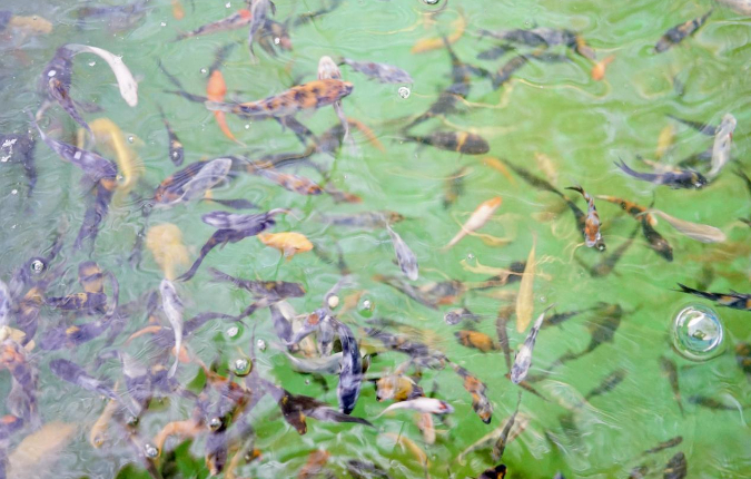 錦鯉能夠健康生長,離不開基地工人的細心養護。養殖過程中,純魚食喂養的錦鯉,對水質要求、喂養標準要求很高,雨水頻繁、微生物過多也可能使錦鯉發生疾病。清理魚池、檢測水質、喂食送氧……工人們每天悉心呵護著這些“漂亮寶貝”。