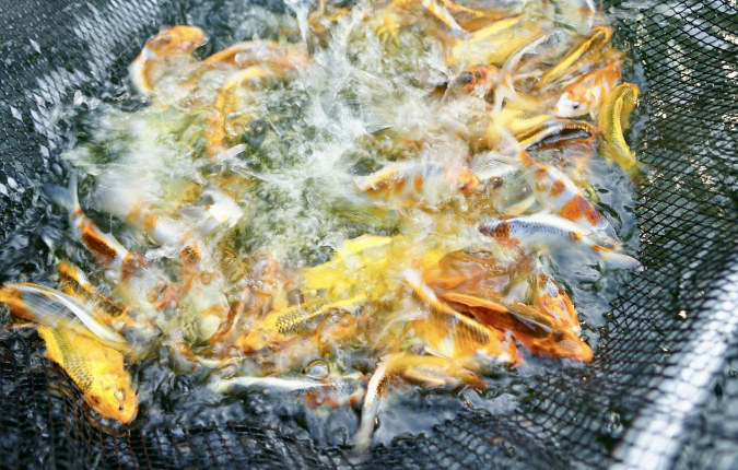 錦鯉看品相,價格相差很大?!懊恳粭l錦鯉的斑紋、色澤、體態都獨一無二,而這些差異正是決定其觀賞性與售價的關鍵,從尋常價位到上萬元的珍品,跨度懸殊?!倍鬟\解釋道,無論是魚苗還是成魚,他們基地都要經過層層篩選,優中選優才會推向市場。而錦鯉的“黃金期”在養殖三年左右,此時品相達到最佳。銷售前,工人們會將選中的錦鯉從魚塘移入備賣池,待它們適應新環境后再安排發貨,確保每尾魚以最佳狀態抵達客戶手中。