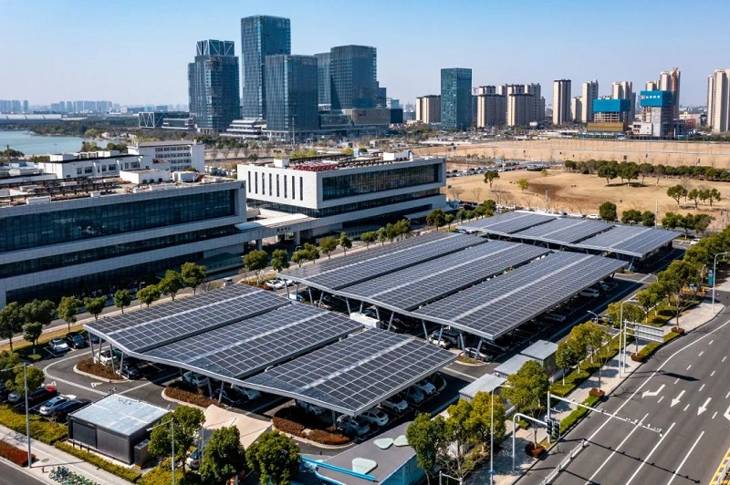 新北區政府“光儲充放換檢”智能微電網場站全面上線,其光伏車棚裝機容量1.06兆瓦,是目前全市光伏容量最大的充電場站。年均光伏發電110萬千瓦時,配置儲能1.6兆瓦時,可實現動態增容、峰谷套利,促進光伏就地消納??偯娣e達6500余平方米的星星充電公園是全市首座充電公園,每到傍晚,這里的充電車位就呈現“滿員”狀態。充電樁就建在家門口,吃完晚飯把車開過去,充上電后還能在公園里健身,一舉兩得。